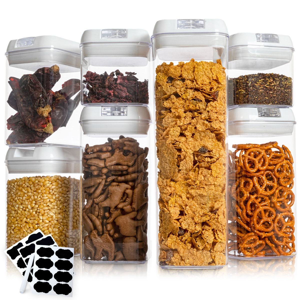 Made of durable BPA-free plastic, their airtight food storage containers will make it easy to keep your kitchen neat and organized. The wide top for easy access, sleek design, and transparent bins make them a breeze to use and will keep your food fresh for extended periods of time. The set includes seven containers with flip top-sealing lids, a white dry-erase marker, and 24 reusable labels to identify food or expiration dates.