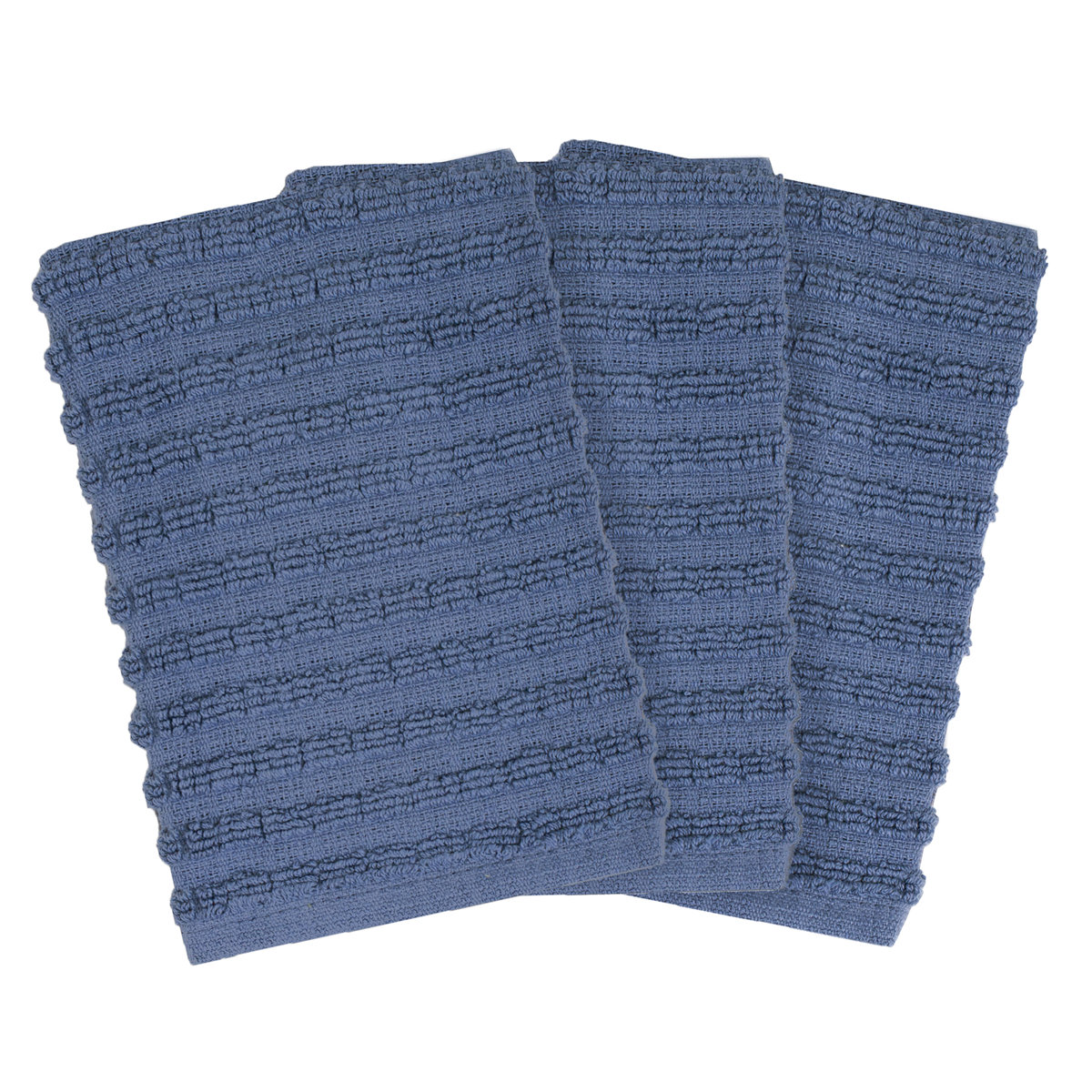 Achieve a new standard in cleaning by stocking your home with royale solid dishcloths (3-pack). These exceptional cloths are crafted with 100% cotton “wave” terry loops and designed with a special woven technology to be ultra-absorbent, drying dishes and wiping up spills with ease. The royale check dishcloths dress up your kitchen quite nicely, and they’re machine washable for easy cleaning.