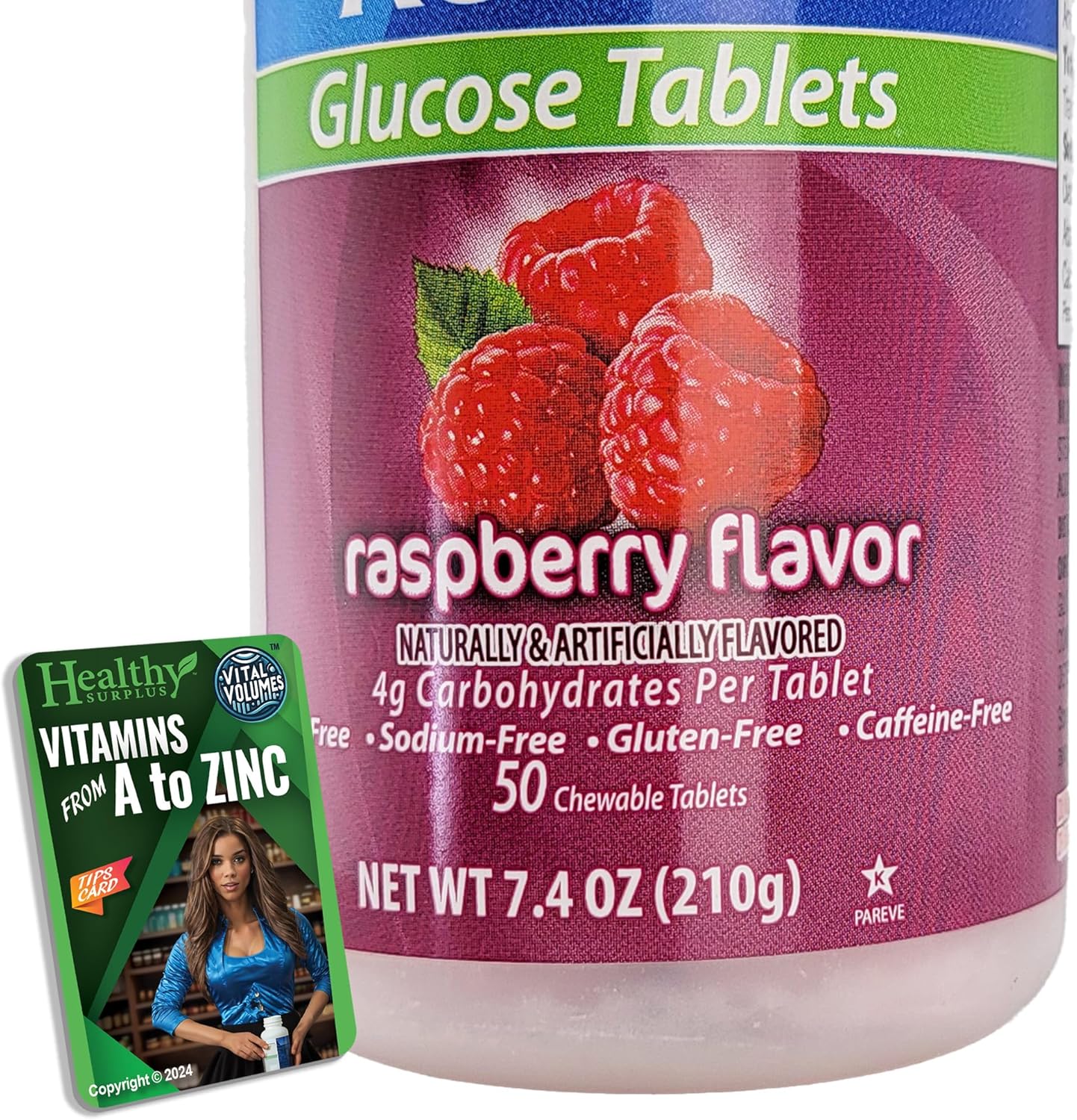 Glucose Tablets - 50 Chewable Tablets and Vital Volume Tips Card (50 Tablets, Raspberry)