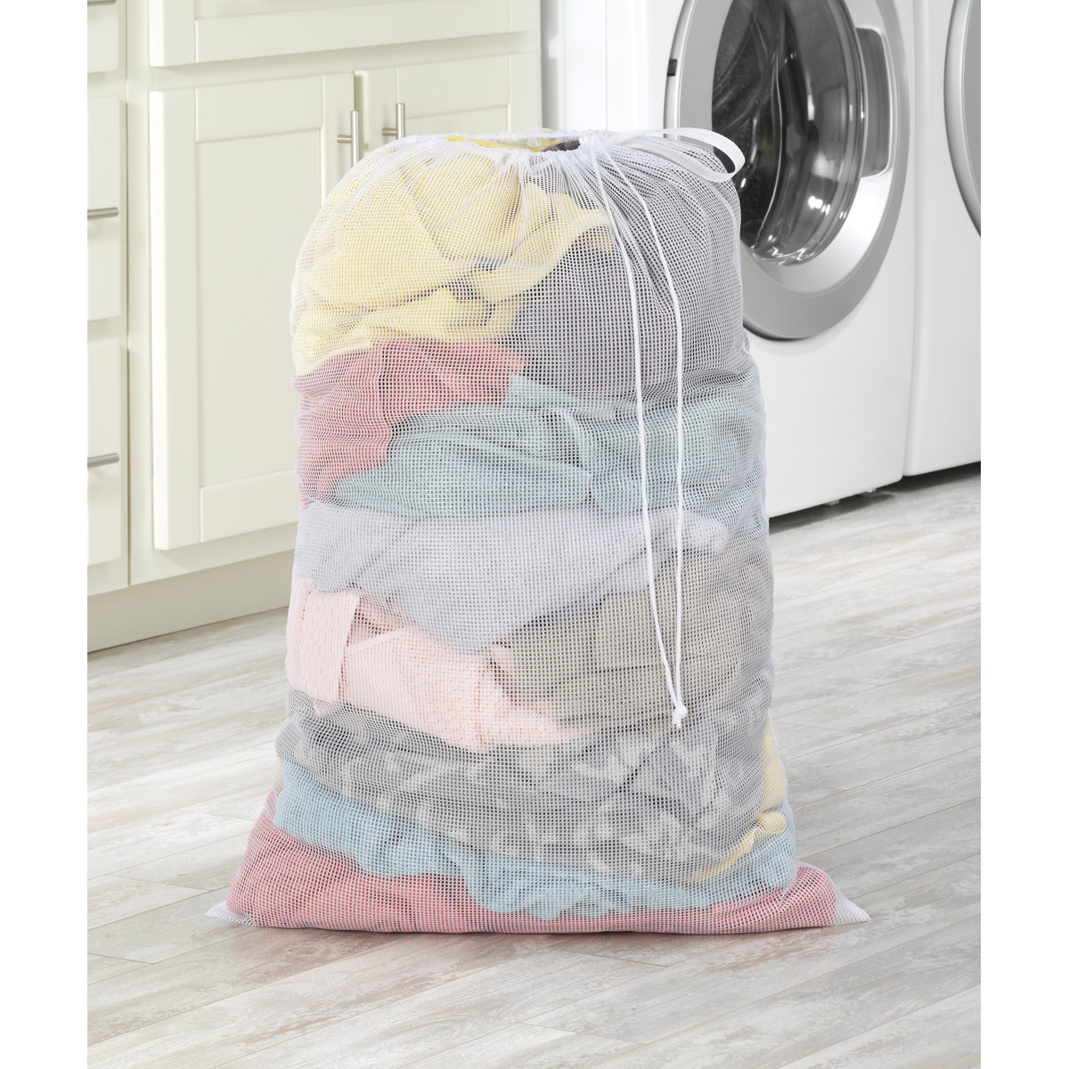 This Mesh Laundry Bag is a space saver for you and holds all the clothes that keep cluttering the room. The polyester mesh construction ensures excellent durability and quality. The white color of the bag enhances its overall look. This Mesh Laundry Bag comfortably holds all your dirty clothes. The bag can be hung on the wall to save space and has a drawstring closure to avoid clothes from falling out. It is easy to carry to your laundry room and is ideal for college dorms and apartments. This casual laundry bag is travel-friendly and is perfect for your small trips.