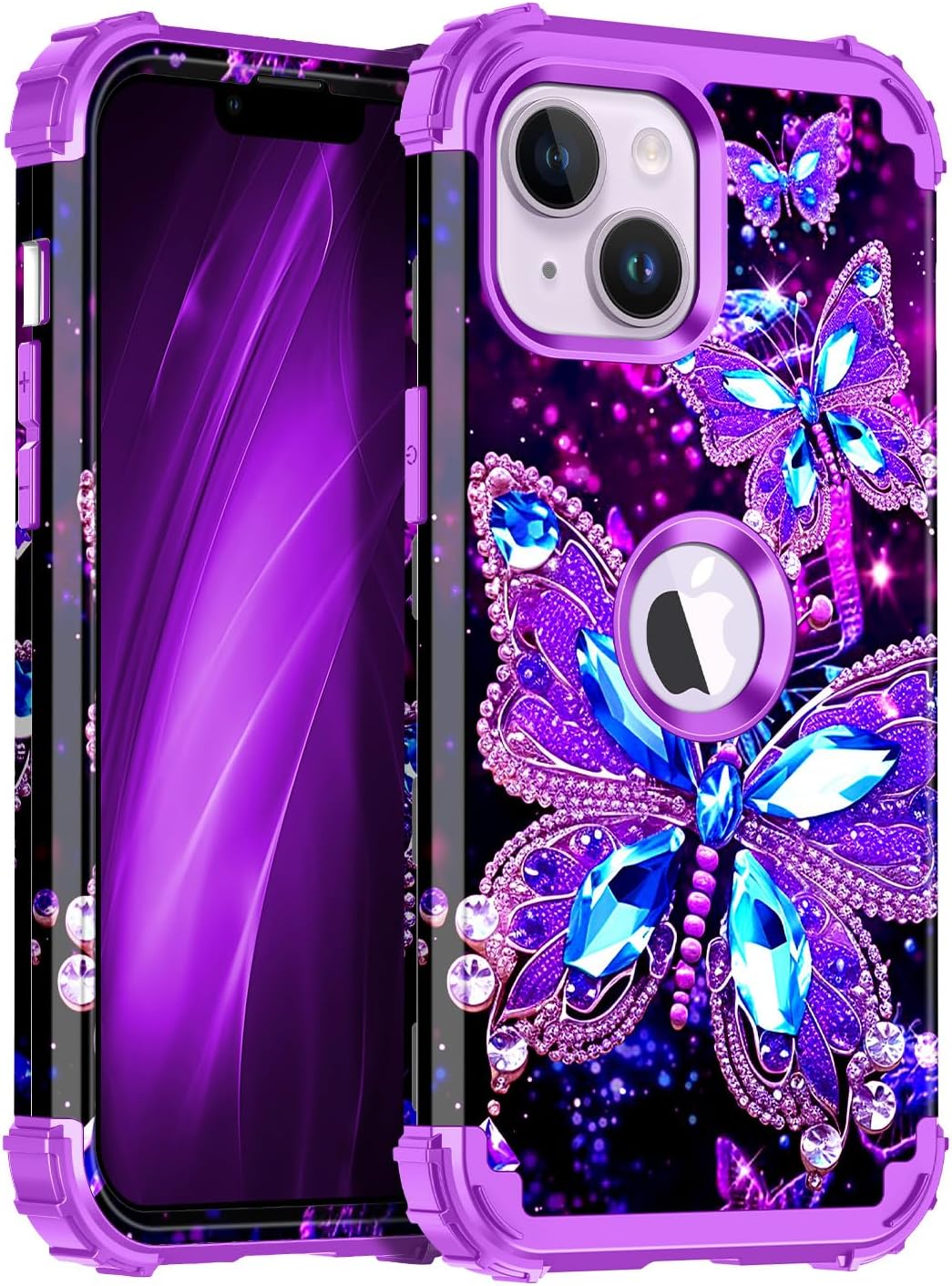 Miqala Compatible with iPhone 14 Plus Case,Glow in The Dark Three Layer Heavy Duty Shockproof Hard Plastic Bumper+Soft Silicone Protective Case for Apple iPhone 14 Plus,Dark Butterfly